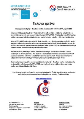 Tisková zpráva – Propagace značky QZ – Zaručená kvalita na oborovém veletrhu STYL, srpen 2023